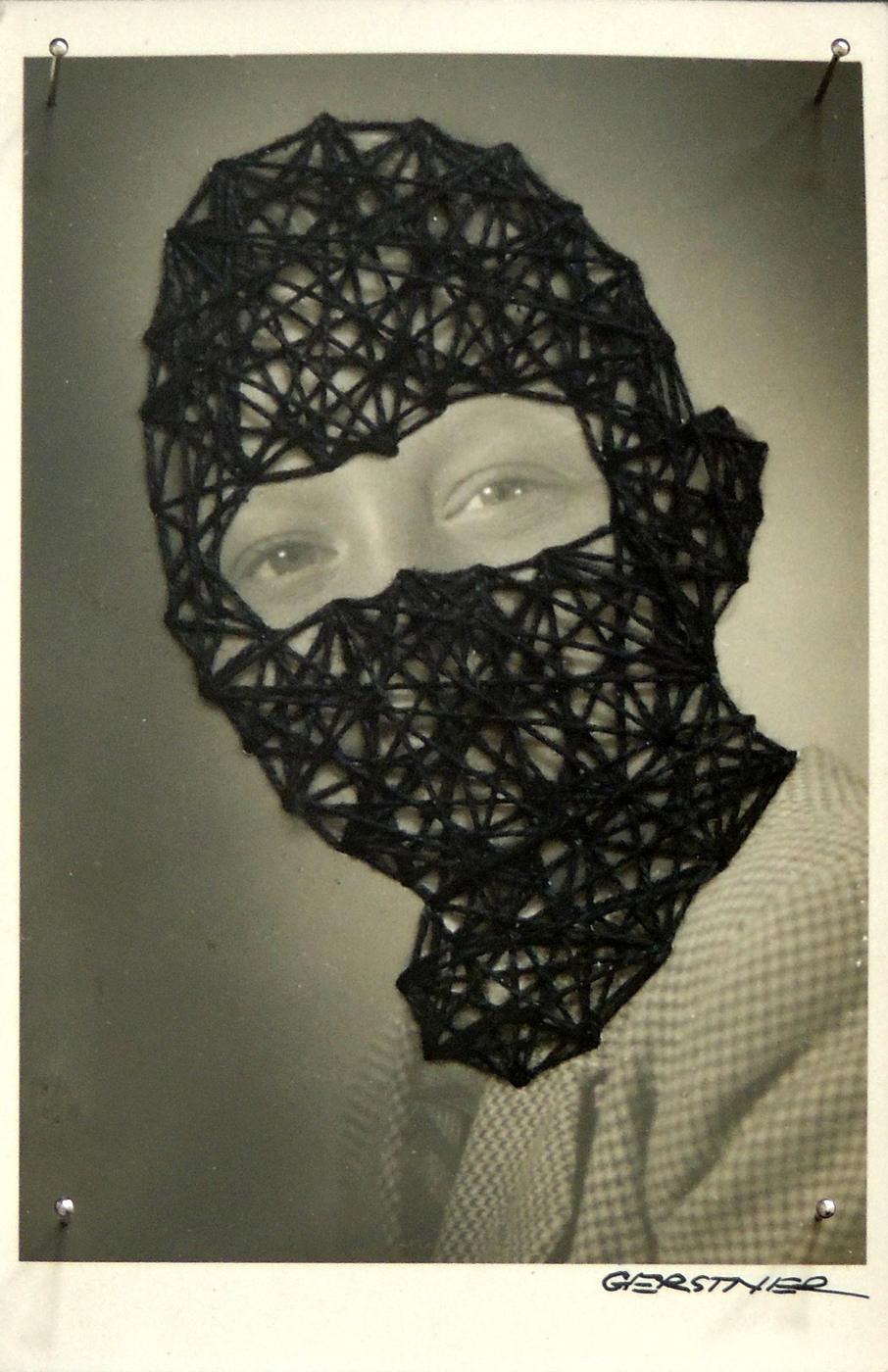 O trabalho se chama “6.528/13”, que é o número da lei que proíbe o uso de máscaras no estado do Rio de janeiro. Bordo máscaras em fotos antigas. Só os olhos ficam à mostra. Nesses trabalhos nunca podemos ver os rostos das pessoas. Nunca podemos identificar quem são.