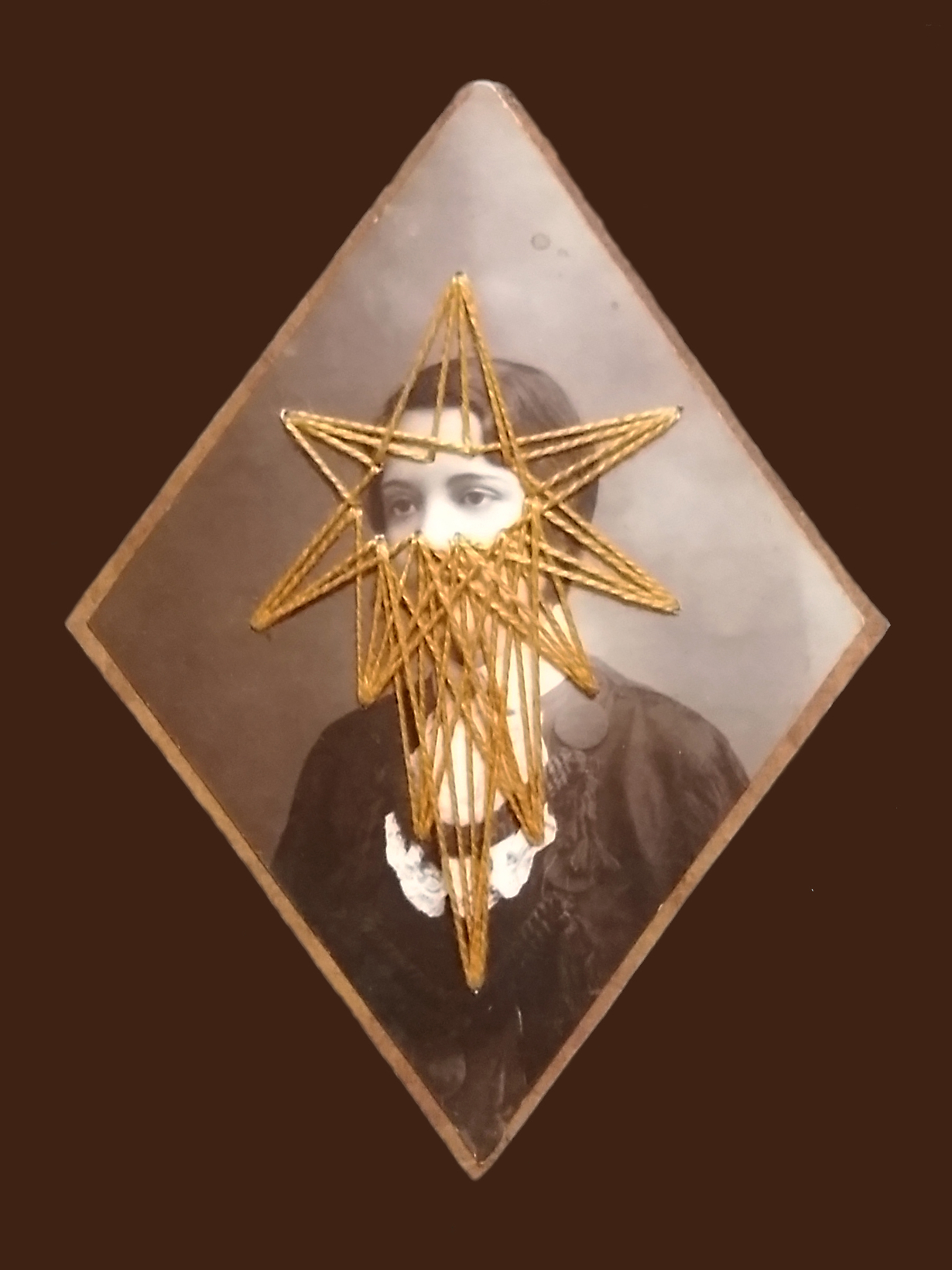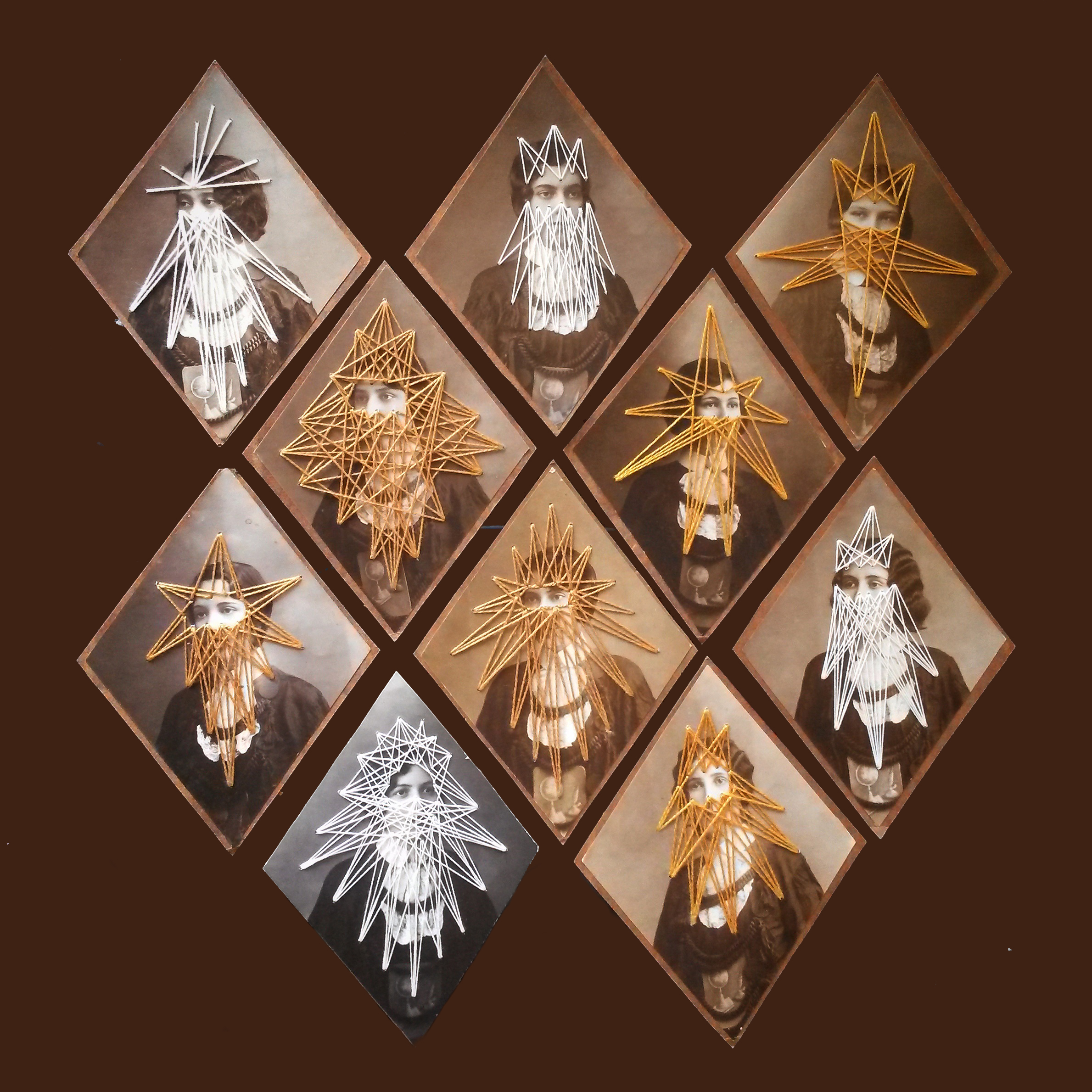 técnica: linha de algodão bordada em fotografia antigas compradas na Feira de antiguidades da Praça XV